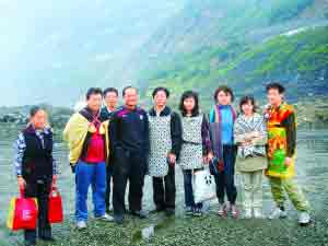 “東西不要了,你們快過來,人最重要”。眼看著山上掉下來的碎石滿天亂飛。我們擔(dān)心著他們?yōu)榱宋覀兊呢斘锒俅蜗萑胛kU。終于,所有人都到了安全的地方。查看傷情時,我發(fā)現(xiàn)杭州電視臺的那位男記者胸部受到了較大撞擊,情況不妙;其中一個央視男記者鎖骨受傷,左臂不能動彈;中國日報的女記者頸椎出了問題,頭不能轉(zhuǎn)了;我的右腳經(jīng)過簡單適應(yīng)勉強(qiáng)能夠蹣跚行走;杭州電視臺女記者鞋子沒了;其他幾人大體無恙。清點(diǎn)人數(shù),一個不少,而遠(yuǎn)處那臺我們曾經(jīng)搭乘的汽車已被砸得像個爛皮鞋。
