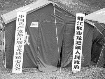 地震發(fā)生后,都江堰市龍池鎮(zhèn)政府樓垮塌嚴(yán)重,部分房屋坍塌成一堆廢墟,未倒的辦公室全成了危房。昨天,記者來到這里看到的卻是另一番景象:現(xiàn)場,許多彩條布搭建成座座“帳篷”,“帳篷”旁矗立著“中國共產(chǎn)黨都江堰市龍池鎮(zhèn)委員會(huì)”和“都江堰市龍池鎮(zhèn)人民政府”兩塊牌子,高高的竹竿上飄揚(yáng)著一面五星紅旗,宣告著龍池鎮(zhèn)抗震救災(zāi)指揮部成立,各項(xiàng)工作現(xiàn)逐步走上正軌。