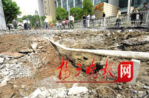 現(xiàn)場有市民稱,當(dāng)時塌陷有“22米多深”。而記者看到,塌方區(qū)域近30平方米,下陷處深的有3米多,淺的1米多,一臺挖掘機(jī)正將坍塌的浮土挖走清除。在塌陷處,一個1米見方的窟窿里,有大量的清水滲出,形成一方小塘。正在搶修的市政工作人員說,塌方的馬路下面埋著一根直徑1.2米的主供水管,另有一根污水管,還有一根10千伏的電纜,“幸虧這些市政設(shè)施沒受損,不然后果相當(dāng)嚴(yán)重!”目擊者介紹,當(dāng)時路上車輛較少,肇事大貨車載重有26噸,經(jīng)過此地時,突然后輪陷了進(jìn)去,結(jié)果越陷越深,緊接著這里就塌方了。施工人員稱,“二次塌方”可能不大。 范曉林 梅建明