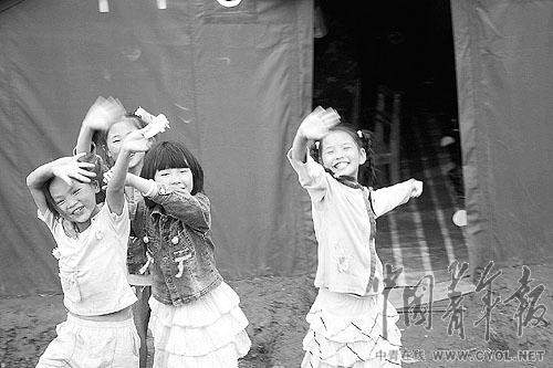 “六一”節(jié)快到了,災區(qū)的孩子們怎么樣了?房子倒了,玩具沒了,學校停課了,他們該干什么呢?帶著這些問題,記者走訪了幾個受災群眾安置點。出乎意料的是,盡管在帳篷和活動板房這種簡陋的條件下,孩子們的樂觀仍讓人動容。