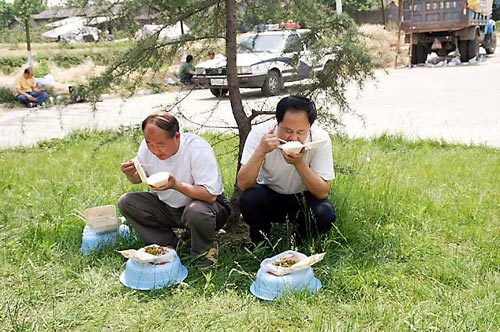 這廣場好大啊,全搭滿了帳篷,里面住著從災(zāi)區(qū)轉(zhuǎn)移出來的人,找了一大圈,好不容易才找到了。這是一個用竹子編織的圍席圍成的簡易廁所,不斷有人進(jìn)進(jìn)出出,一個大坑上面放了幾塊木板,由于板子又薄又窄,人站在上面搖搖晃晃的。所謂茅坑拉屎臉朝外,坑周圍兩排人背對背,各自默不作聲地解決自己的事情,完事的低頭走人,后面的急忙搶上那個位置。過慣了現(xiàn)代人的生活,一下子回到這樣一種狀態(tài),真的覺得異常尷尬。