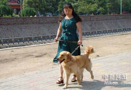 據(jù)了解,“福娃”今年一歲半了,它是一只“黃金獵犬”,是個“boy”,身高60厘米,體重58公斤。現(xiàn)在,經(jīng)過兩個多月的“隨從訓練”,它已經(jīng)掌握了十幾個英文單詞,像“good”,“no”,“go”,“stop”,“l(fā)eft”,“right”,“wait”,“sleep”等。不過,畢竟“福娃”從小生活在鄭州,有些河南話還是聽得懂哩,關大姐也是經(jīng)常中英文夾雜著教它。 “福娃”每天的訓練很辛苦,當看到它疲憊的神情,關大姐也會很心疼,會安慰它。當它表現(xiàn)好的時候,也會給予表揚和鼓勵它。