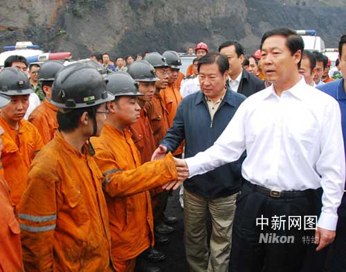 6月14日10時,國家安監(jiān)總局局長王君、國家煤礦安全監(jiān)察局局長趙鐵錘、山西省省委書記、省人大常委會主任張寶順趕到事故現(xiàn)場,到井口差察看,并詳細(xì)詢問搶救進展情況。