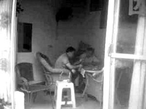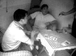 網(wǎng)友“善良老百姓”還在論壇里貼出兩張抓拍的照片:兩名穿藍(lán)色T恤的男子,拿著撲克坐在桌前,桌上散亂地鋪著現(xiàn)金;第三人的面目沒(méi)出現(xiàn)在畫面里,但可以見到其伸出的一只手。從照片的畫面判斷,拍攝者當(dāng)時(shí)站在房間外。