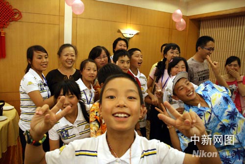 中新網(wǎng)6月16日電 (付美斌 關(guān)向東 陳少婷)6月15日晚上,是89名參加“愛心呵護(hù)、陽光行動(dòng)”活動(dòng)的四川災(zāi)區(qū)孩子們,在海南渡過的最后一個(gè)夜晚,孩子們在依依不舍中告別一直陪伴他們的心理輔導(dǎo)老師、導(dǎo)游阿姨,以及向外界傳播他們一言一笑的記者叔叔阿姨們。懂事的孩子們用不同方式表達(dá)他們對(duì)海南的感謝和眷念,有的用紅色蠟燭油在白紙上涂心字寫相思,有的忙著讓海南叔叔阿姨們簽名留電話,有的拉著愛心叔叔阿姨讓記者拍離別合影照片,更多的是抱著愛心叔叔阿姨們哭成“淚人”。