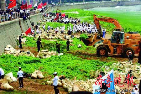 自接到預(yù)警信息后,青島市第一時間啟動了應(yīng)急監(jiān)視監(jiān)測。截至28日,青島市政府動員全市上下投入滸苔清理工作,從海上、潮間帶、岸邊進(jìn)行全方位的打撈清理,努力將滸苔的不利影響降到最低,為舉辦奧帆賽創(chuàng)造良好的海域環(huán)境。截至目前,已有數(shù)萬人、千余艘各類船只、數(shù)十臺裝運機(jī)械投入到清理行動中,清理滸苔數(shù)量超過10萬噸。