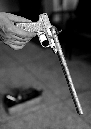 走火的自制火藥槍。