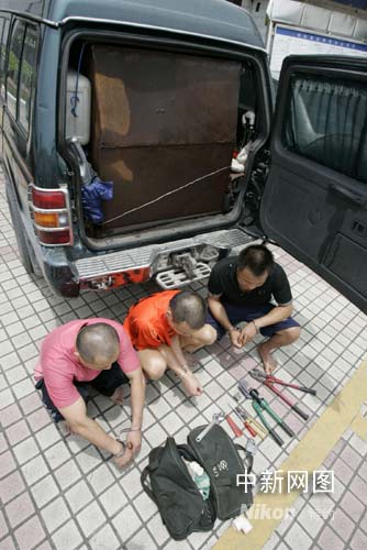 警方現場繳獲吉普車內的液壓剪、扳手等作案工具一批。經檢查,被盜大貨車的油箱內約有70升柴油已被吸入吉普車的油罐。根據估計,吉普車內的油罐容量有1噸左右。