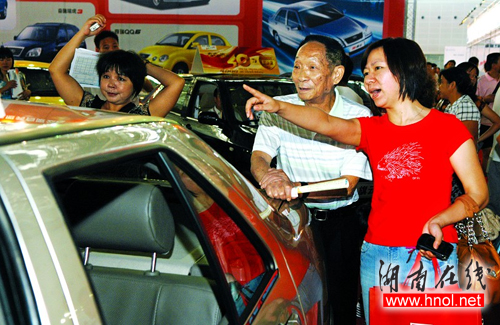 2008湖南車展沒有讓老人失望。上午10點30分,“雜交水稻之父”袁隆平院士,帶著一家子,經(jīng)過1個多小時的挑選后,終于笑言:“心里有底了”。