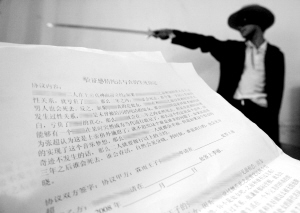 昨日上午,張謙卑拿著這紙協(xié)議來(lái)到本報(bào),說(shuō)出了自己的苦悶。他說(shuō),2007年8月28日,他和網(wǎng)友“自由魚(yú)”李×見(jiàn)面并相戀,因?yàn)閺堉t卑一直懷疑李×不是處女,還多次側(cè)面通過(guò)QQ試探到李×似乎有其他男人,所以心結(jié)遲遲未解開(kāi)!八拗兄Z沒(méi)有,但我還是不死心,我們因?yàn)檫@還曾經(jīng)分手過(guò)一段時(shí)間!睆堉t卑說(shuō),今年5月份他們復(fù)合了,但是他心里仍有陰影,于是昨日自己草擬了一份“咒死協(xié)定”!拔乙呀(jīng)和她把意思表達(dá)了,她同意簽字!睆堉t卑說(shuō)。