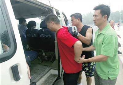 便衣民警將抓獲的倒票者帶回。(京華時報圖;王儉攝)