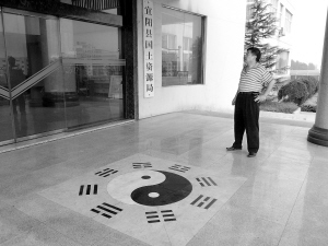據(jù)悉,當(dāng)時(shí)宜陽縣國(guó)土資源局辦公室的一名工作人員向記者解釋說,這幅八卦圖僅僅是一個(gè)圖形而已,沒有任何特殊含義。不過,來該局辦事的許多當(dāng)?shù)剞r(nóng)民卻認(rèn)為,在大樓的入口處鑲嵌八卦圖主要是為了辟邪。