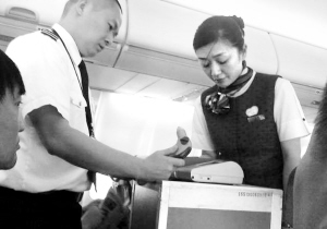 昨晚8:20,距離CA4156次航班起飛還有10分鐘,烏魯木齊機(jī)場(chǎng)安保人員和空姐,拿著一個(gè)小儀器,開(kāi)始對(duì)飛機(jī)上的乘客的手掌虎口進(jìn)行檢查!耙粋(gè)小儀器,空姐解釋可以測(cè)出是否接觸過(guò)爆炸物!毙禊i在課堂內(nèi)外雜志社工作,7月28日出差到烏魯木齊,準(zhǔn)備回渝。