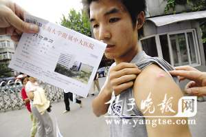 昨天中午12點(diǎn)20分許,南京湖南路馬臺街上,一輛奔馳車快速開出停車場時撞到一名騎車回家的大學(xué)生高某,奔馳車撞人后開出近30米掉頭返回,車主搖下車窗準(zhǔn)備給被撞者300元讓他自己去醫(yī)院,結(jié)果周圍群眾趕來圍住車子報(bào)警。所幸高同學(xué)腦部和胸部沒有損傷,只是手肘和肩部有軟組織挫傷和皮膚擦傷。