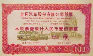 金杯汽車公司1988年發(fā)行的原始股票