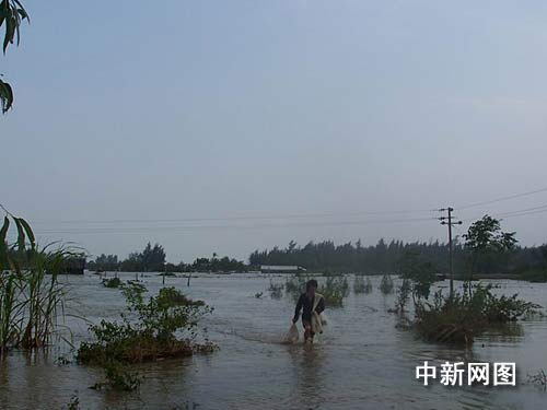 據(jù)徐聞縣前山鎮(zhèn)官員反映,由于連日大雨滂沱,降雨量達(dá)近400豪升,為當(dāng)?shù)厥暌挥,全?zhèn)16000多畝水田受浸,導(dǎo)致正待收獲的九成以上水稻失收,同時(shí),大量魚塘被水淹沒,全鎮(zhèn)經(jīng)濟(jì)損失近7000萬元。