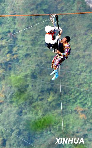 新疆"達(dá)瓦孜"傳人張家界挑戰(zhàn)極限坡度"失手"(圖)