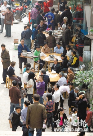 昨日中午,涪陵區(qū)珍溪鎮(zhèn)的凱云賓館成了全鎮(zhèn)最鬧熱的地方,大量賓客趕來等待吃流水宴席,因人數(shù)太多,有人等了三輪仍沒入席。此前,本報接到多位涪陵區(qū)新妙鎮(zhèn)老板電話:“鎮(zhèn)長秦學(xué)在珍溪老家辦席幾百桌為父親祝壽,邀請我們赴宴。兩地相距30多公里,我們不想去,又不好拒絕!