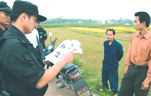 圖為警方在合浦縣白沙鎮(zhèn)瓦窯嶺村的進出路口設卡搜捕“9·18”專案在逃人員