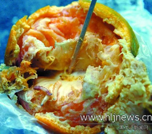 “我吃到了‘蛆柑橘’!22日13時許,哈市南崗區(qū)燎原街居民梁女士給記者打來電話:“我在市場上買到了‘蛆柑橘’,而且我和兒子各吃了一個。發(fā)現(xiàn)柑橘里面有蛆之后,我們?nèi)メt(yī)院做了檢查,醫(yī)生說沒什么大事,讓回家觀察!