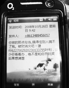 “就你做的那點(diǎn)勾當(dāng),瞞得住別人瞞不住我。破財(cái)消災(zāi)吧。錢(qián)多少你看著辦,絕不是和你開(kāi)玩笑,后果你想清楚!賬號(hào)******葉利!笔盏竭@樣的短信,你會(huì)中騙子的圈套嗎?26日,市民張先生就收到這樣一條敲詐短信。
