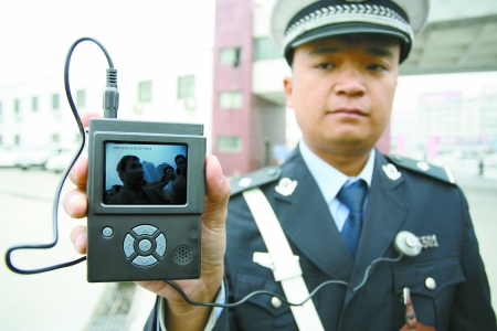 這部看上去類(lèi)似MP4的“攝像頭”,學(xué)名叫“音像記錄儀”,帶有一個(gè)高清的顯示屏,可以實(shí)現(xiàn)同步錄像、錄音、拍照和PMP(媒體播放器)擴(kuò)展功能,不受白天、夜晚限制,能夠連續(xù)錄像8小時(shí),存儲(chǔ)照片2萬(wàn)張。每部在千元以上,專(zhuān)門(mén)用來(lái)現(xiàn)場(chǎng)取證。