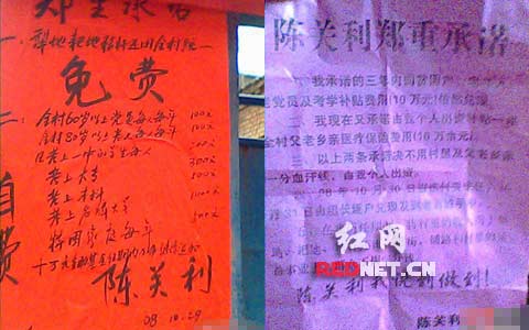 宣傳海報(bào)上,陳關(guān)利的承諾書(shū)。