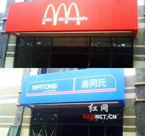 “這擦邊球打得很牛很雷人,真是山寨店鋪大薈萃!”8日晚上,網(wǎng)友“鍋爐工”在紅網(wǎng)論壇發(fā)帖爆料,稱在網(wǎng)上看到一個(gè)題為《對不起,我真的被雷到了,南京最雷人山寨店群》的圖片帖,圖片顯示在南京文安街上,林立的店鋪清一色是山寨名牌店鋪,其中屈臣氏、必勝客、麥當(dāng)勞、李寧、星巴克、哈根達(dá)斯等分別被克隆成曲同氏、必勝糊、李明、巴克星、哈根波斯等。