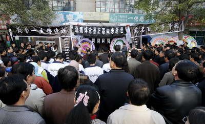 11月10日上午11時(shí)58分,榆中縣一悟路整條路面上哭聲一片。刺骨的寒風(fēng)中,一千余人自發(fā)排成長(zhǎng)長(zhǎng)的“人道”,送他們心中的好老師——突發(fā)腦溢血暈倒在講臺(tái)上的榆中縣第六中學(xué)數(shù)學(xué)教師景正翠最后一程。