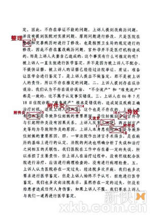 記者在判決書掃描件中的確發(fā)現(xiàn)不少筆誤,比如把“導(dǎo)致”寫成“導(dǎo)治”、“人工流產(chǎn)”寫成“工人流產(chǎn)”、“附件炎”寫成“附件驗(yàn)”和“附件鑒”、“被上訴人”寫成“被上訴們”、“認(rèn)為”寫成“真?zhèn)巍,“拒查”寫成“?jù)查”、“整理”寫成“整體”、“人流史”寫成“人流使”等。