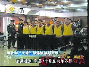 鄧偉波涉黑團(tuán)伙在廣州中院聽判(電視截圖)