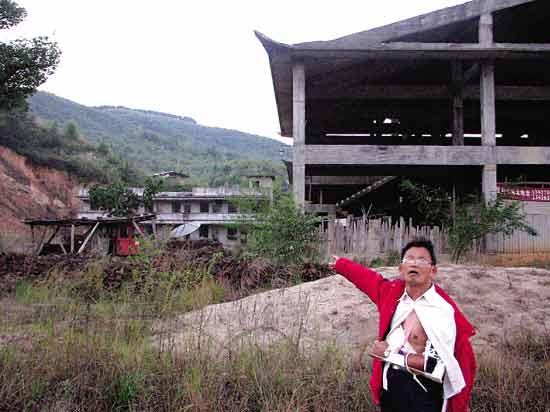 征地項(xiàng)目如期開建,不服氣的丘家厲一直上告。“我終于在2004年11月1日盼來了區(qū)國土局的停工協(xié)議書,可是工程卻依然照常開工,”丘家厲告訴記者,“直到我找到省國土廳,工程才于2005年9月7日正式停工,可是直到現(xiàn)在,公墓建筑依然沒有拆除,土地也沒有歸還農(nóng)民!