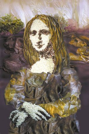 桔多淇1996年畢業(yè)于川美,學(xué)的是美術(shù)設(shè)計(jì)。這位家在謝家灣的重慶女孩兒,曾在黃桷坪當(dāng)過“黃漂”,隨后,又成了“北漂”。讓她一夜成名的,是她最近在北京舉行的名為“蔬菜博物館”攝影個(gè)展,在這次展覽上,《最后的晚餐》的餐桌變成了一塊巨大的豆腐,尤大等一干人則是用生姜制成。而《蒙娜麗莎》更是豆腐當(dāng)臉,海帶當(dāng)頭發(fā),紫菜做衣服,看上去很有意思。而這些攝影作品的素材,都是桔多淇親手制作。桔多淇在畫展上展出的都是以這些素材為元素的攝影作品,“每一件我只做了12張照片,小尺寸的畫廊定價(jià)為1880美元,大尺寸的要賣2888美元,在開展的第一天,賣出了兩幅小尺寸的!