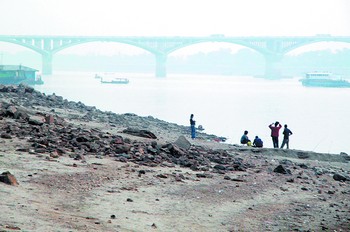 昨日,數(shù)位市名在干涸的湘江河灘上玩耍,目前,湘江長(zhǎng)沙段水位已跌破26米,如近期上游雨量不足將逼近歷史最低水位。余志雄攝
