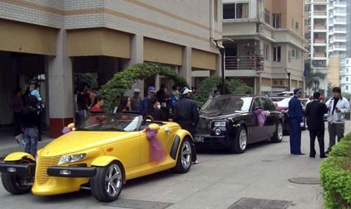 貌似并不高檔的小區(qū)內(nèi),卻出現(xiàn)了超豪華的強(qiáng)悍車(chē)隊(duì):“獵獸”開(kāi)頭,后面跟著三輛“幻影”,以及“賓利”“世爵”等車(chē)(如圖)。昨日,一則《福州某集團(tuán)老總嫁女,豪車(chē)云集》的帖子在某網(wǎng)站論壇走紅,該帖描述在福州的碧水芳洲小區(qū),某集團(tuán)老總嫁女,眾多豪車(chē)云集,場(chǎng)面壯觀(guān)。眾多網(wǎng)友稱(chēng),已被這些豪車(chē)震得說(shuō)不出話(huà)來(lái)了。(成都晚報(bào))