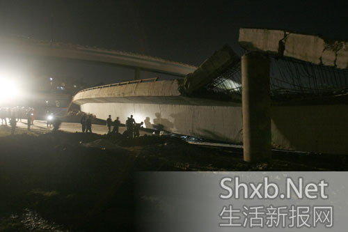 立交垮塌現(xiàn)場(chǎng)圖。來源:生活新報(bào)網(wǎng) 記者 張訓(xùn)武攝
