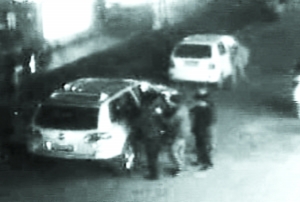 5人將關(guān)鍵塞進(jìn)一輛轎車。 監(jiān)控錄像截屏圖