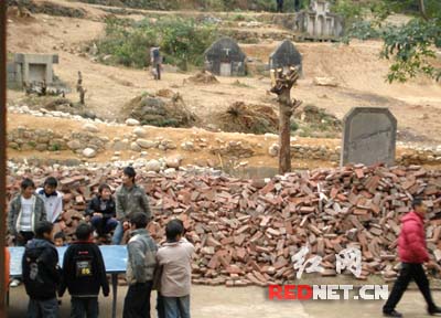 這所學(xué)校的張校長感到挺無奈,原來,由于占地40畝的新操場明年才能建成投入使用,為了不耽誤學(xué)生的體育課,因此臨時(shí)啟用了這片空地作為操場,這塊空地,是打算用來修教師宿舍的,因?yàn)榘串?dāng)?shù)亓?xí)俗,墳只能在農(nóng)歷二十四節(jié)的“大寒”期間才可動(dòng)遷,因此,這些還未遷走的墳?zāi)棺钜惨鹊矫髂?月下旬才能遷走。