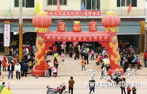 昨中午,重慶豐都縣雙路鎮(zhèn)馬鞍山村,一場壽筵在公路邊隆重舉行。壽星是當(dāng)?shù)卮妩h支部書記甘紅軍的母親,當(dāng)天70大壽。為圖喜慶,甘辦了100桌酒席宴請當(dāng)?shù)剜l(xiāng)親,并請來歌舞演員搭臺演唱。但由于當(dāng)?shù)氐貏莳M窄,部分客人只能將車停在公路上,占據(jù)了半邊公路,引來部分過路車輛怨言。