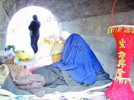 跟在記者身后,有幾個(gè)鄰近店鋪的經(jīng)營(yíng)者,其中一位水暖安裝店的老板娘,自稱與劉某熟悉。劉某聽(tīng)見(jiàn)她的呼喚,坐起來(lái)問(wèn):“又有啥活?”“沒(méi)啥活,人家想問(wèn)你點(diǎn)兒情況!崩习迥锵蛴浾呓忉尩,平時(shí)店里接些大活兒,臨時(shí)讓劉某幫著干活。記者與劉某攀談起來(lái),據(jù)他講,他老家在駐馬店,弟兄三個(gè),父母健在。1993年,他畢業(yè)于本省一所知名大學(xué)哲學(xué)系,后到新鄉(xiāng)市一家企業(yè)工作,一年多后企業(yè)停產(chǎn),后來(lái)又破產(chǎn)倒閉。之后他在貨場(chǎng)、水泥廠等干過(guò),后來(lái)不愿干了,現(xiàn)在每天四處撿破爛,在這橋洞里住了一年多。