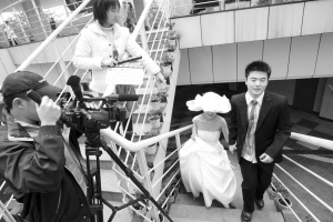 苗若木正在校園內(nèi)拍攝山寨版“桃花運” 本報記者 吳小川 攝