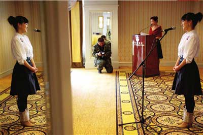 下午2點(diǎn),比賽正式開(kāi)始,兩名自稱從事教師職業(yè)的女孩展示了自己的才藝,并回答了一些與文化音樂(lè)有關(guān)的問(wèn)題。但在隨后的比賽中,到場(chǎng)記者被請(qǐng)出場(chǎng)外,主辦者稱,“這是為選手的隱私考慮”。