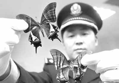 野外生存數(shù)量與大熊貓差不多的金斑喙鳳蝶,人們?cè)诖笞匀恢袔缀跻姴坏。但讓鄭州海關(guān)緝私警察為之一驚的是,他們?cè)诓楂@的國(guó)際航空掛號(hào)信里,不僅見到了24枚喙鳳蝶標(biāo)本,還見到了極為罕見的2枚金裳鳳蝶標(biāo)本。記者今天從鄭州海關(guān)獲悉,他們成功偵破了一起利用郵遞渠道走私珍貴蝴蝶標(biāo)本出境的案件。