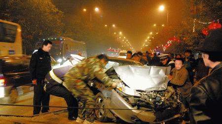 當(dāng)晚,交警經(jīng)過調(diào)查初步認(rèn)定,事發(fā)時(shí),來自外地的三菱車是從白塔嘉陵江大橋向嘉陵區(qū)到武勝縣方向,在濱江大道處越過雙實(shí)線超車,與相對(duì)行駛的一輛馬自達(dá)轎車發(fā)生擦掛,引發(fā)馬自達(dá)轎車與一輛出租車相撞。此后,出租車又與后面一輛黑色轎車相撞,而外地來的三菱車在與馬自達(dá)轎車相撞后,向前沖出15米,又與一輛尼桑車發(fā)生相撞,兩車均損毀嚴(yán)重。