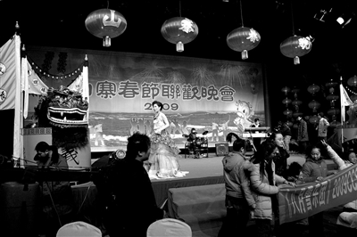 昨天下午5點(diǎn)左右,老孟一反日前對媒體三緘其口、“神秘化”的姿態(tài),通知各家媒體,山寨春晚在朝陽區(qū)勝古莊社區(qū)冶金研究所內(nèi),首次帶妝彩排。記者趕到后看到,山寨春晚現(xiàn)場布置得有模有樣——前后兩個舞臺,多角度燈光和完善的音響設(shè)備,5機(jī)位拍攝全景、特寫和觀眾表情,甚至還有一架搖臂多角度拍攝演員,儼然是一場專業(yè)水平的晚會。