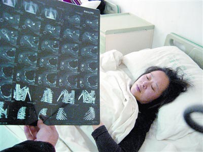 正月初三,只為勸阻不要在公交車旁燃放煙花爆竹,市公交集團四公司585路調(diào)度員陳紅莉竟被打得腰椎骨裂、肋骨骨折。昨日,陳紅莉躺在病床上,向記者訴說心酸的一幕。
