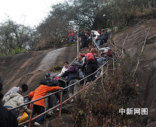 記者在登山的時候,發(fā)現(xiàn)了一撥來自四川災區(qū)的同胞們也趕至丹霞山慶新年。他們是曾氏家族、四世同堂30多人浩浩蕩蕩地開著五部車從成都慕名來到丹霞山,他們在這雄偉壯觀的丹霞美景的面前,也許下了對四川、對祖國的美好新年祝愿:“丹霞最美、丹霞最牛、四川雄起、祖國昌盛”!