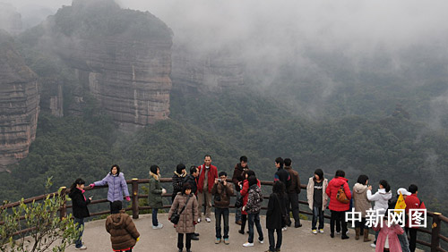 中新網(wǎng)韶關1月31日電(馮昶 劉加青 李正紅)從大年初五起,由于天氣轉好,廣東韶關市丹霞山風景區(qū)出現(xiàn)美麗的云海景觀,吸引眾多游客觀賞,景區(qū)接待持繼升溫。據(jù)統(tǒng)計,昨日共接待游客近2.6萬人次。自助自駕游游客劇增,同比增長一倍半以上,其中有不少來自四川災區(qū)的民眾。