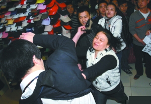 昨日9時(shí)30分,秀水街市場(chǎng)一樓層經(jīng)理帶著管理人員逐一實(shí)施封攤停業(yè)整頓,但剛到第一家攤位,就遭到商戶(hù)圍攻。