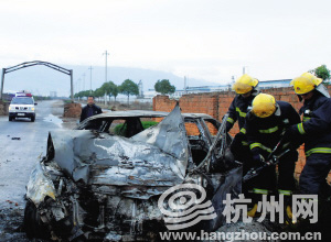 昨天凌晨2時40分左右,一輛銀灰色海馬轎車先后撞上隔離墩、水泥的龍門架橋墩、路邊圍墻,隨后轎車起火。車上6個年輕人,5死1傷。